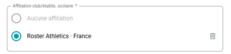 Si l’athlète n’appartient à aucun club ou établissement scolaire, sélectionnez l’option Aucune affiliation.