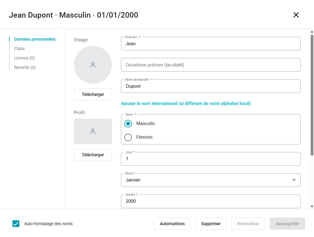- Cliquez sur Télécharger pour importer une photo de l’athlète.
