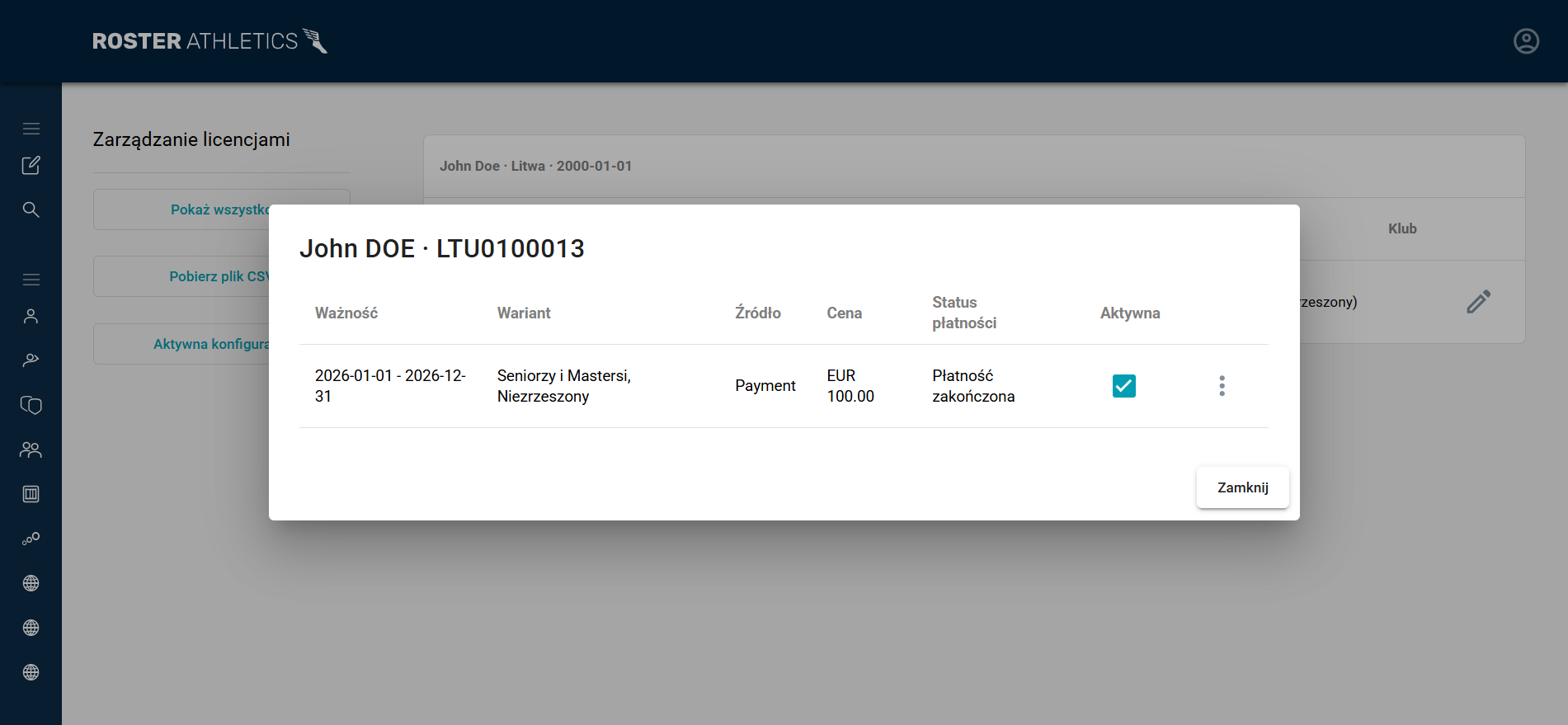 - Licencje: dodano możliwość zarządzania licencjami zawodników w systemie Roster Athletics. Zawodnicy mogą teraz dodawać i opłacać swoje licencje w serwisie zgłoszeniowym, natomiast federacje mogą zarządzać licencjami w systemie administracyjnym.